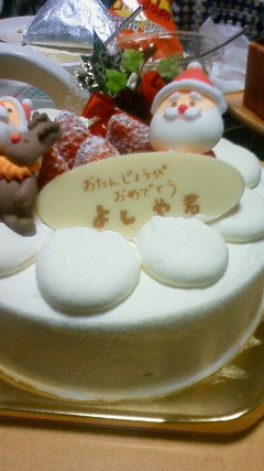 クリスマス小説、読んで下さってありがとうございます。聖おにいさん大好きです。よしや君ケーキでパーティをしたのは一昨年のクリスマスで、チョコレートの板に字を書く時、失敗するのが怖くて随分緊張して、えいやっと書いたことが懐かしいです。その時お招きした友人の一人が携帯で写真を撮ってくれていたのでUPしておきますね。